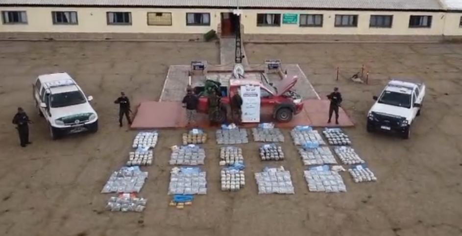 Ocurrió en la madrugada del miércoles, a la altura del Hito XVI-X, cuando los uniformados vieron ingresar el vehículo al territorio nacional proveniente de la República de Chile y que al percatarse de la presencia del personal de la Fuerza, interrumpieron la descarga de los estupefacientes y se dieron a la fuga hacia el país vecino. Al encontrarse en medio una zona montañosa e inhóspita, los funcionarios trasladaron el cargamento a las instalaciones de la Fuerza en donde pudieron constatar que se trataba de 379 kilos de “cannabis sativa” y 7 kilos de la sustancia blancuzca que estaban alojados en distintas partes del rodado.