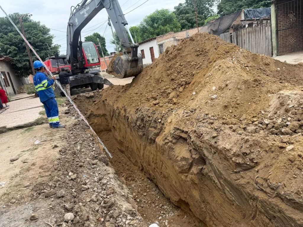 Con el objetivo de alcanzar los 700 metros lineales en esta primera etapa, personal municipal, en conjunto con Aguas del Norte, llevó adelante trabajos de ampliación de la red colectora en calle Juana Azurduy, en el tramo comprendido entre el Pasaje Islas Malvinas y Alvear.