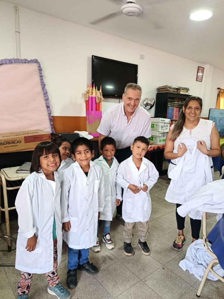 En la ciudad de Pichanal, el legislador entregó guardapolvos a los alumnos de la Escuela Juan Domingo Perón, una institución a la que asisten niños de comunidades originarias. El objetivo es colaborar con las familias y garantizar que los alumnos inicien las clases en igualdad de condiciones.-