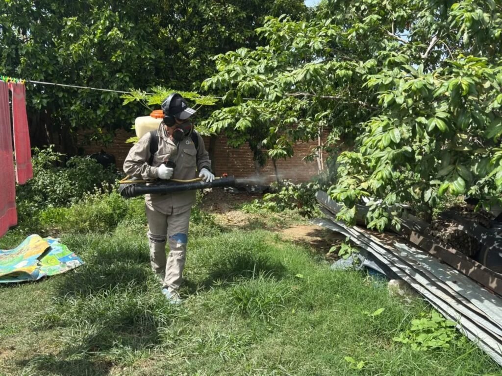 Personal del área de Enfermedades Tropicales de la Municipalidad en conjunto con Control de Enfermedades por Vectores de Nación, ex palúdica, realizaron ayer un bloqueo por sospechoso de caso de Dengue.
