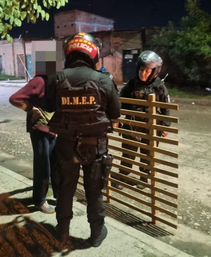 Efectivos de la División Motorista de Emergencia Policial de Orán realizaron un procedimiento durante un patrullaje preventivo, al observar a una persona que se desplazaba transportando una parrilla de madera en calles Los Andes y Beruti.