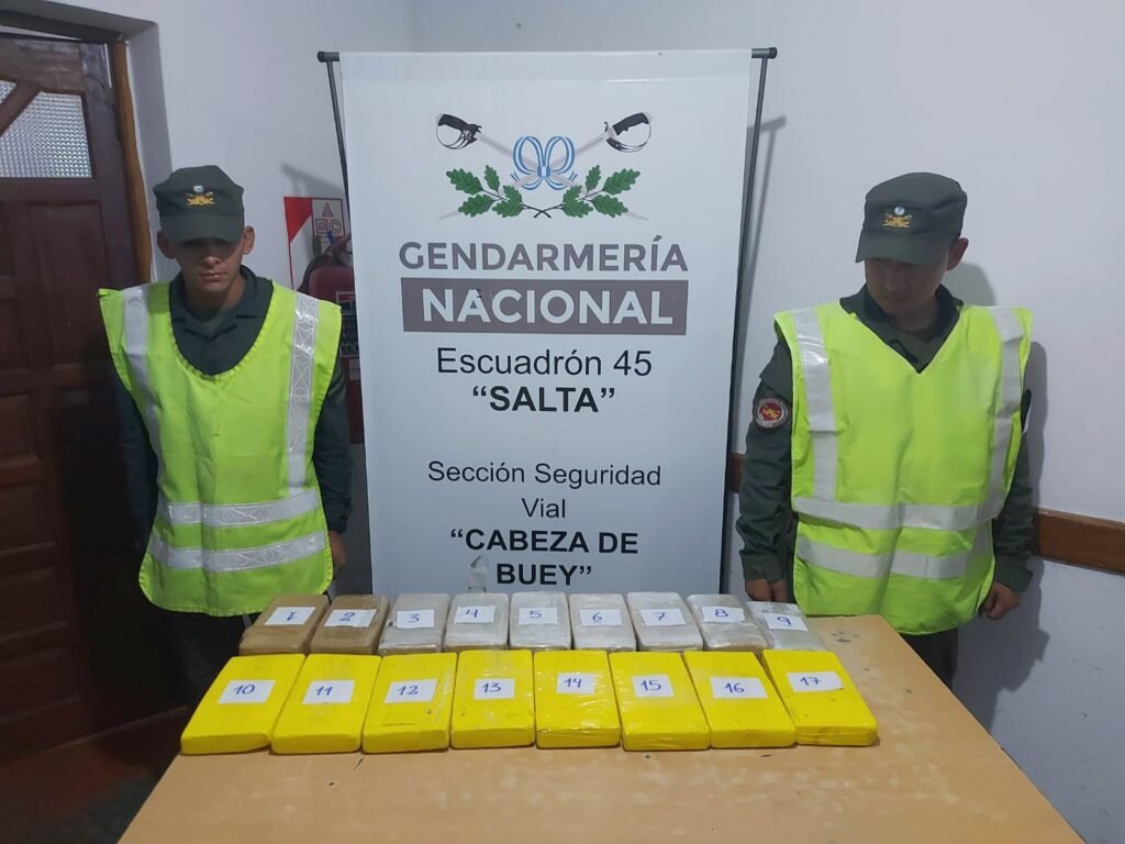 A las Hs. 03,30 de la madrugada, los efectivos de la Sección Seguridad Vial “Cabeza de Buey” del Escuadrón 45 “Salta” inspeccionaron el primer ómnibus, que circulaba desde San Salvador de Jujuy con destino final ciudad de Esquel (Chubut), cuando se encontraban emplazados sobre la intersección de las Rutas Nacionales N° 9 y N° 34, a la altura del kilómetro 1.545.