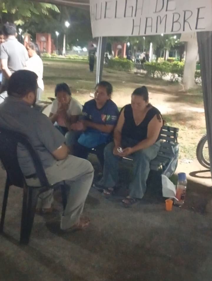 Hace algunas horas tres empleadas municipales identificadas como Romina Gómez, Juana Barroso y Fátima Cuarto iniciaron una huelga de hambre a modo de protesta en la Plaza Independencia frente a la Iglesia “Asunción al Cielo”.