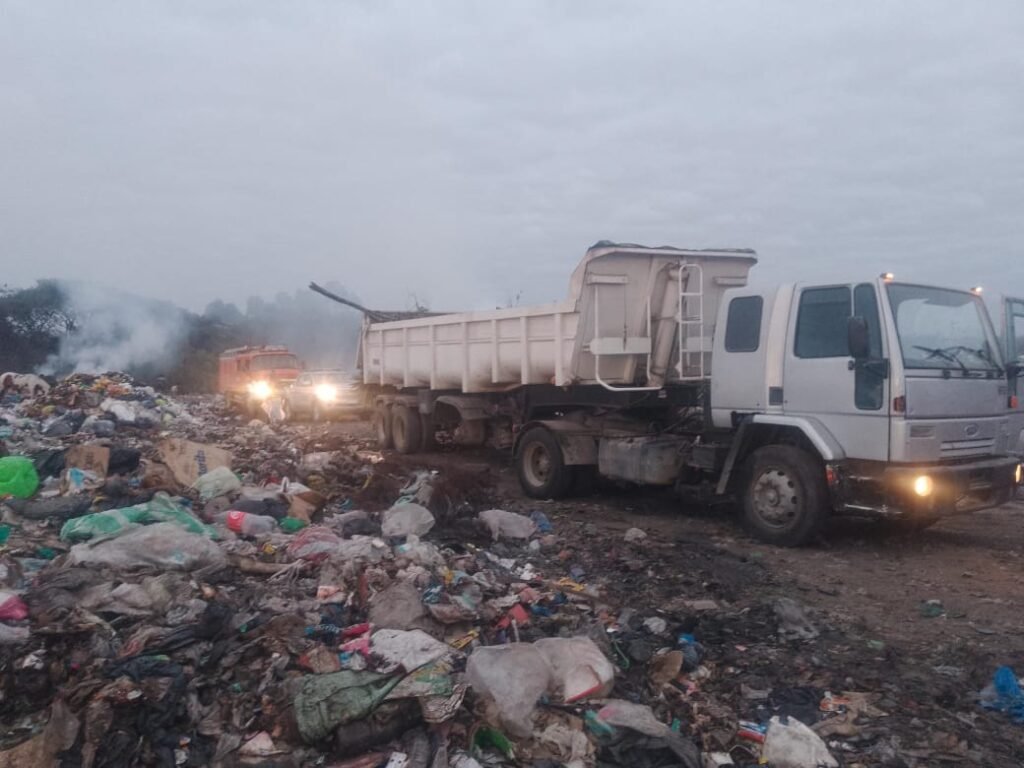 Al lugar se desplazó el Móvil 10 de Bomberos Voluntarios, llegando al predio del basural municipal se constató que se trataba de un camión con una batea que efectuaba maniobras de descarga de resto de poda y basura las cuales se prendieron fuego al tomar contacto con la basura que ya estaba depositado en el lugar.