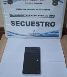 Motoristas del Centro de Coordinación Operativa de Orán, al fiscalizar a un motociclista y a su acompañante, detectaron que transportaban entre sus prendas de vestir un celular con pedido de secuestro.
