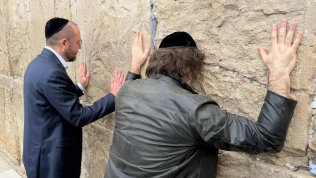 La primera actividad del presidente Milei en territorio israelí fue la visita al Muro de los Lamentos.
