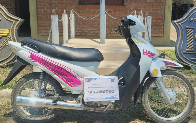 La intervención se realizó en barrio 9 de Julio, tras inspeccionar la moto, se detectó que poseía pedido de secuestro por robo.