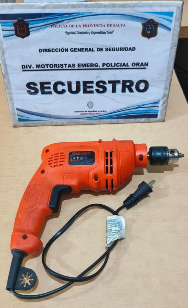 Motoristas del Centro de Coordinación Operativa de Orán demoraron esta mañana a un joven por la sustracción de un taladro desde un inmueble de la localidad.