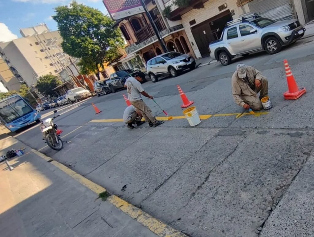 * Marcación de parada de colectivo en Pellegrini y López y Planes.