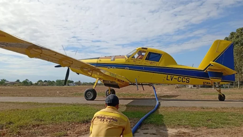 Trabajan por tierra los integrantes de la Brigada Forestal de Defensa Civil bajo la supervisión del Director de Operaciones , Matías Garrone, la colaboración de los Bomberos Voluntarios de Orán que realizan el re abastecimiento de agua en el Aero Club, y el soporte aéreo de un avión hidrante junto a otra aeronave que realiza sobrevuelos de reconocimiento y guía para las acciones de control, que pertenecen al Servicio Nacional de Manejo del Fuego.