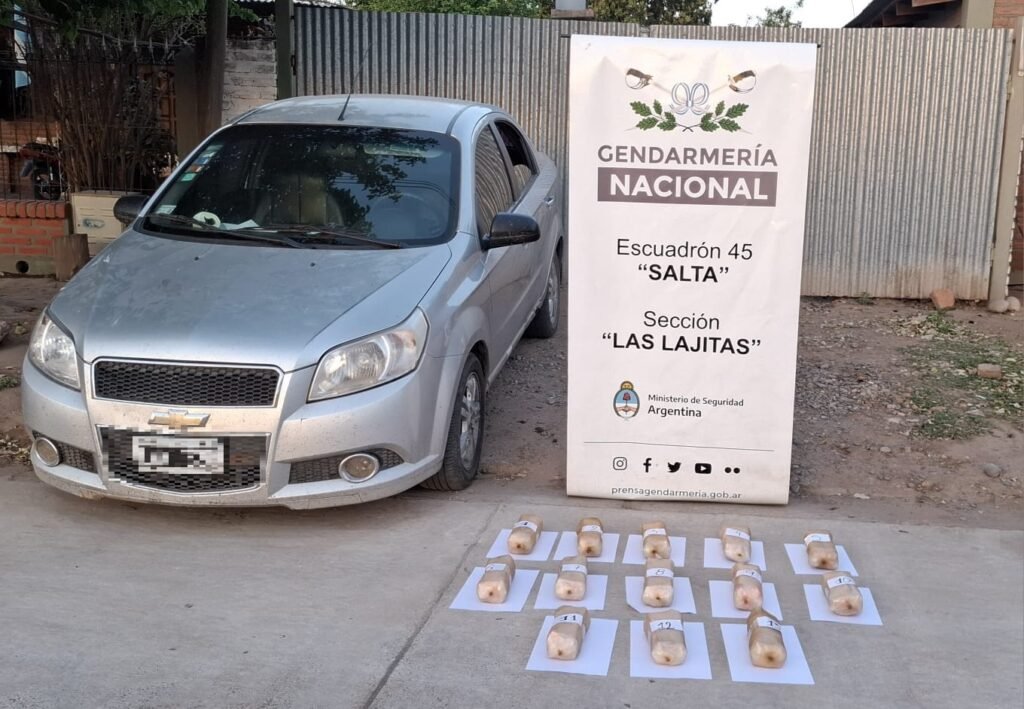 El último sábado, en horas de la tarde, los efectivos de la Sección “Las Lajitas” dependientes del Escuadrón 45 “Salta” sobre la Ruta Provincial N° 5 a la altura de la localidad de General Pizarro detuvieron la marcha de un vehículo Chevrolet Aveo en el que viajaban tres personas provenientes de Orán con destino hasta la provincia de Tucumán.