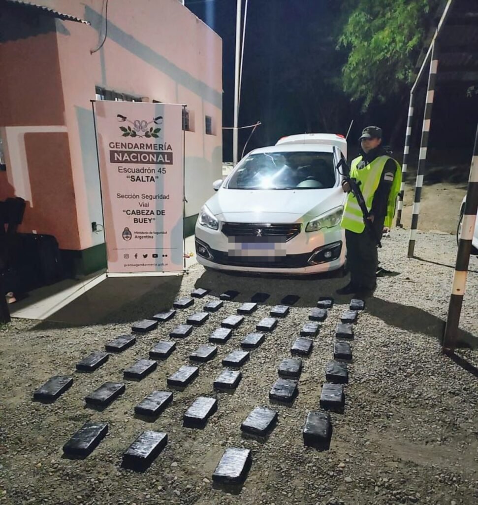 Sobre la intersección de las Rutas Nacionales N° 9/34, a la altura del kilómetro 1.545, los efectivos de la Sección Seguridad Vial “Cabeza de Buey” dependiente del Escuadrón 45 “Salta” realizaron las señales de detención a un automóvil Peugeot 408, que estaba ocupado por dos hombres mayores de edad.