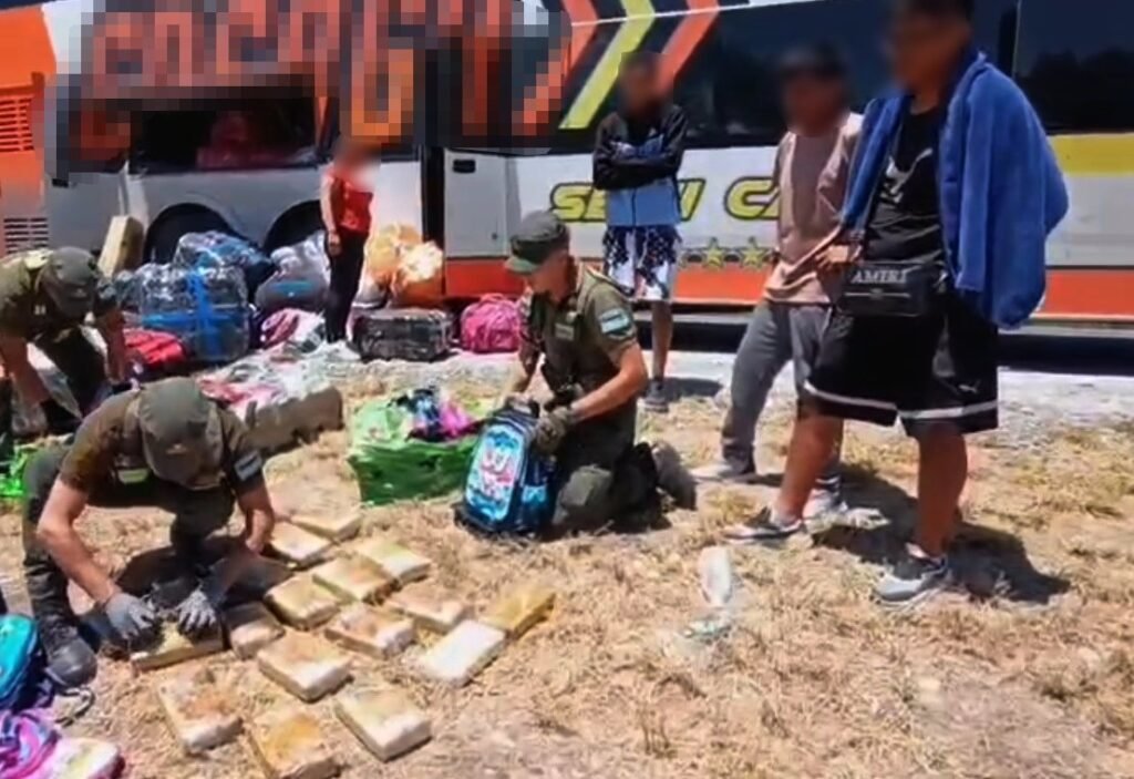 El personal de la Fuerza descubrió que las ciudadanas simulaban hacer un “tour de compras”, cuyo colectivo circulaba desde Salta hacia Mendoza. De la bodega del ómnibus, los gendarmes notaron la presencia de tres bultos de grandes dimensiones, los cuales emanaban un fuerte olor a cannabis sativa. Al abrirlos, se corroboró la presencia de 60 paquetes rectangulares que contenían la sustancia vegetal. Las involucradas quedaron detenidas.